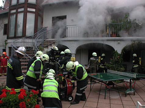 Aus dem Gebäude, eine großzügig angelegte Einfamilien-Villa, quoll beim Eintreffen der örtlichen Feuerwehr aus sämtlichen Fenstern und sogar aus dem Dach Rauch. Unklarheit herrschte über vier angeblich im Haus befindliche Jugendliche.