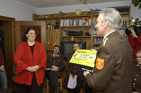 Die 25 Freiwilligen Feuerwehren und fünf Betriebsteuerwehren des Bezirkes Mödling haben gemeinsam 7222 Euro aufgebracht. Aus dieser Spendensumme wurden Weihnachtsgeschenke für die gesamte Kinderdorffamilie des Hauses St. Florian beschafft. Aus dem beträchtlichen Restbetrag kann die Kinderdorfmutter im Jahr 2005 weitere Anschaffungen abdecken. Die Übergabe der Geschenke und des Spendenschecks durch Bezirksfeuerwehrkommandant OBR Franz Koternetz erfolgte am 14. Dezember 2004. An der Feier nahm neben zahlreichen Repräsentanten von Feuerwehren des Bezirkes Mödling auch Landesfeuerwehrkommandant LBD Wilfried Weissgärber teil.