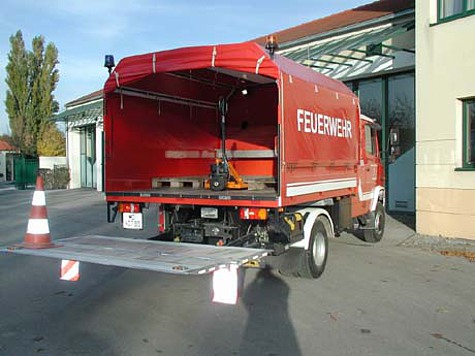 Die Umgestaltung zu einem Feuerwehrfahrzeug nahmen wir fast zur Gänze selbst vor: Zunächst wurde der LKW so weit zerlegt, dass er neu lackiert werden konnte. Danach sah er einem Feuerwehrauto schon wesentlich ähnlicher. In weiterer Folge veranlassten wir die Montage einer Ladebordwand. Weiters setzten wir eine Plane auf, die bei Bedarf mit vier Mann problemlos abgenommen werden kann. Folgetonhorn und Blaulicht ergänzten das Bild, unser neuer "Last" war fertig. Lediglich die Autoelektrik ließen wir von einem Professionisten installieren.