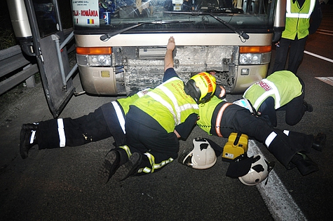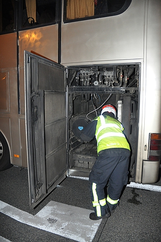 Trotz der Sprachbarriere wurde mit dem rumänischen Buslenker versucht, die Ursache für den Stillstand des Fahrzeuges zu finden, dabei konnte ein Defekt an der Bremsanlage sowie an der Fahrzeugbatterie festgestellt werden. Da die Versuche, den Motor mit Hilfe einer fremden Stromzufuhr (Starthilfekabel) sowie die Versorgung der leeren Druckluftbremsanlage durch die Feuerwehr Wiener Neudorf bei mehreren möglichen Einspeisstellen scheiterten, entschied man sich, dazu Spezialkräfte der Berufsfeuerwehr Wien anzufordern.