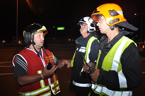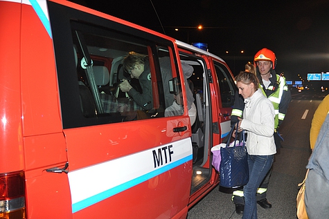 Parallel dazu musste der Abtransport der Insassen von der Autobahn organisiert werden. Aus diesem Grund wurde ein Wiener Neudorfer Mannschaftstransportfahrzeug an die Einsatzstelle entsandt sowie über die Bezirksalarmzentrale weitere Fahrzeuge zum Personentransport angefordert. Diese Fahrzeuge wurden von der Freiwilligen Feuerwehr Mödling zur Verfügung gestellt. Mit insgesamt fünf Fahrzeugen konnten alle Insassen des Reisebusses im Shuttleverkehr auf eine nahe gelegene Raststation gebracht werden.