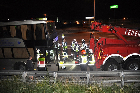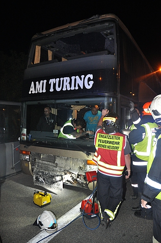 Am Abend des 2. Juni 2014 alarmierte um 21:56 Uhr die Bezirksalarmzentrale die Freiwillige Feuerwehr Wiener Neudorf zur Bergung eines Reisebusses auf der Südautobahn am Knoten Vösendorf in Fahrtrichtung Wien. Zu diesem Zeitpunkt konnte noch nicht erahnt werden, welche Probleme die anstehende Bergung für die freiwilligen Einsatzkräfte mit sich bringen sollte.