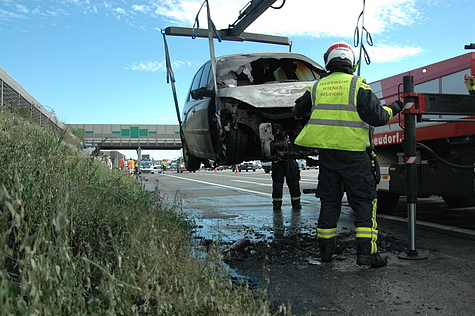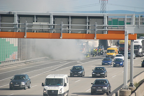 Auf der Südautobahn A2 in Fahrtrichtung Wien kam es am Beschleunigungstreifen bei der Auffahrt Wiener Neudorf am 18. August 2014 zu einem Fahrzeugbrand.