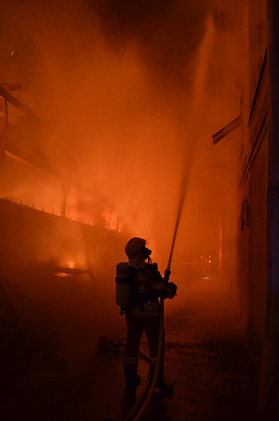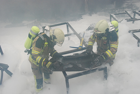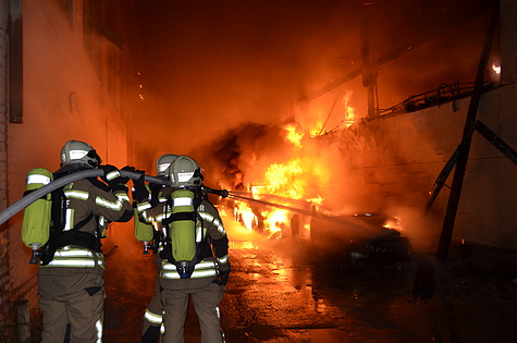 Nach rund zwei Stunden Dauerlöscheinsatz zeigten die getroffenen Maßnahmen Wirkung und der Brand konnte unter Kontrolle gebracht werden. Dann wurde jedoch vom Besitzer mitgeteilt, dass sich eine Acetylenflasche in der Halle befindet.