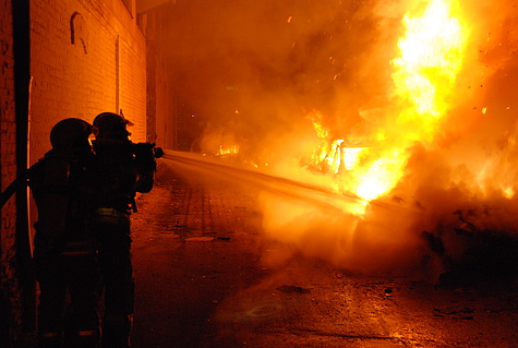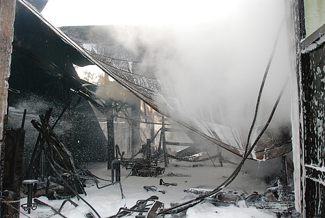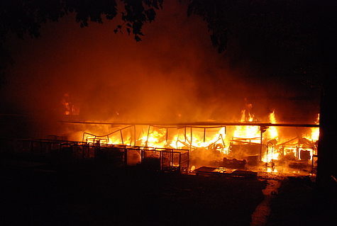Nach fast vier Stunden Löscheinsatz konnten die ersten Feuerwehrkräfte ihr Material zurückziehen. Dabei musste festgestellt werden, dass viele Schläuche beim Löscheinsatz kaputt gingen.
