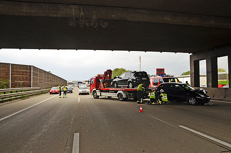 Nach dem Zusammenstoß kamen die drei am Unfall beteiligten Fahrzeuge auf der Autobahn zu stehen. Da unklar war, ob Personen eingeschlossen waren und sich aus ihrer Zwangslage befreien konnten, alarmierte die Bezirksalarmzentrale die Freiwillige Feuerwehr Wiener Neudorf zum Verkehrsunfall mit eingeklemmter Person.