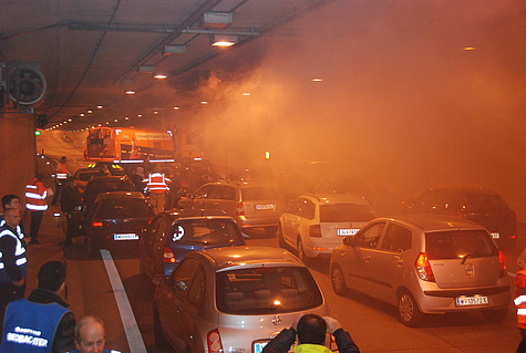Die Bezirksalarmzentrale alarmierte die Freiwillige Feuerwehr Vösendorf zu Menschenrettung auf die Schnellstraße. Noch vor dem Einfahren in den Tunnel, konnte Einsatzleiter HBI Fritz Flasar eine Verrauchung wahrnehmen.