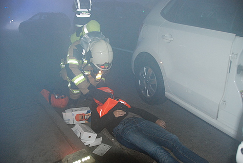 Neben der Menschenrettung wurde erstmals eine neue Technik im Atemschutzeinsatz geübt. In diesem Fall besteht ein Trupp, nicht wie gewöhnlich aus drei, sondern aus fünf Mitgliedern. Dabei steht der Truppführer in der Mitte und jeweils ein Mitglieder geht neben einer Fahrzeugseite vorbei und untersucht das Auto auf Insassen.