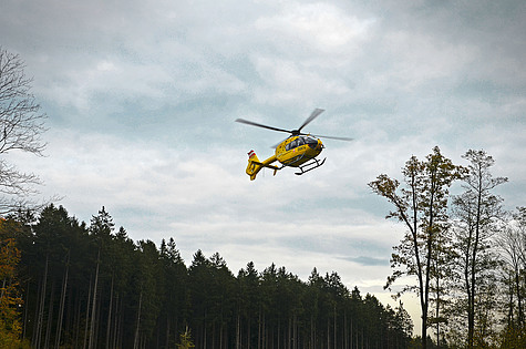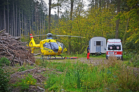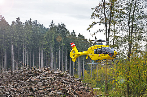 Von anwesenden Arbeitskollegen wurde sofort über den Notruf Hilfe gerufen. Dank der guten Ortskenntnisse der Einsatzkräfte waren innerhalb kürzester Zeit Polizei, Rettung und Feuerwehr vor Ort. Auch der Rettungshubschrauber landete bei der Einfahrt in den Wald.