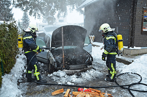 Noch vor dem Eintreffen der Einsatzkräfte versuchte der Besitzer des KFZ mit einem Pulverlöscher vergeblich die Flammen einzudämmen. Bei diesem Löschversuch stürzte der Mann auf Grund der winterlichen Bedingungen zu Boden und verletzte sich an der Schulter.