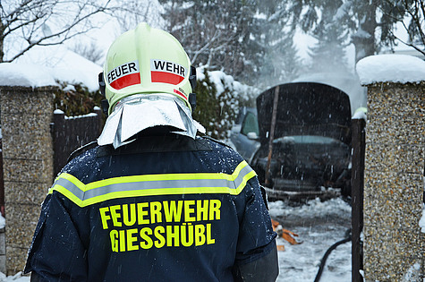 Aus unbekannter Ursache kam es am Mittwoch, 07. Jänner 2015 bei winterlichen Verhältnissen zu einem Fahrzeugbrand im Ortsgebiet von Gießhübl. Um 15:22 Uhr alarmierte die Bezirksalarmzentrale die Freiwillige Feuerwehr Gießhübl zum PKW-Brand.