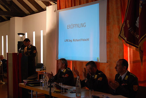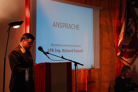 Nach der Begrüßung der zahlreichen Ehrengäste und Vertreter der Feuerwehren durch LFR Ing. Richard Feischl präsentierte HBI Fritz Gollob weitere beeindruckende Zahlen: 267 Menschen und 146 Tiere sind von den Feuerwehren des Bezirkes Mödling 2014 gerettet oder aus Notsituationen befreit worden.
