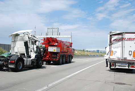 Am Unfallort eingetroffen wurde das wahre Ausmaß erst erkannt. Ein türkischer Lenker kam aus bislang unbekannten Umständen mit seinem Lastwagen auf der 1. Fahrspur zum Stillstand. Der nachkommende rumänische LKW fuhr in weiterer Folge auf.