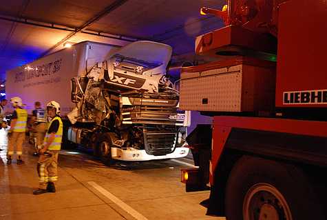 Im Tunnel S1 in Fahrtrichtung Schwechat ereignete sich am 30. Mai 2015 ein Verkehrsunfall zwischen zwei Lastwagen. Die Bezirksalarmzentrale alarmierte um 12:55 Uhr die Freiwillige Feuerwehr Vösendorf zum technischen Einsatz.