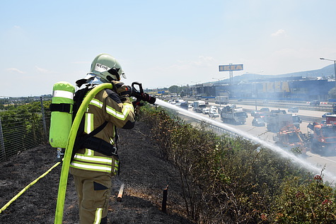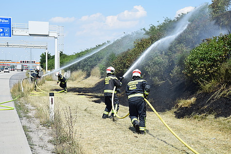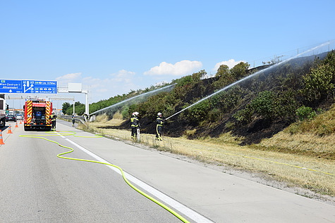 In gewohnt guter Zusammenarbeit der beiden Feuerwehren konnte die rasche Brandausbreitung gestoppt und die Situation unter Kontrolle gebracht werden. Kurz nach 14 Uhr konnten die Löscharbeiten beendet und die erste Fahrspur für den Verkehr wieder freigegeben werden.
