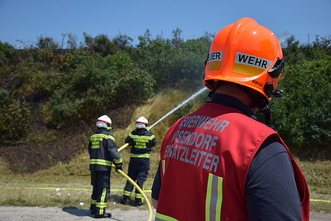 Die beiden Feuerwehren standen mit 6 Fahrzeugen und 30 Mann bei hochsommerlichen Temperaturen über eine Stunde lang im Einsatz.