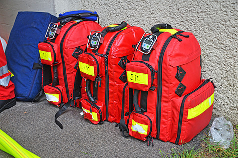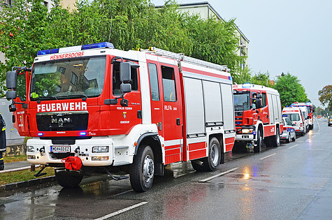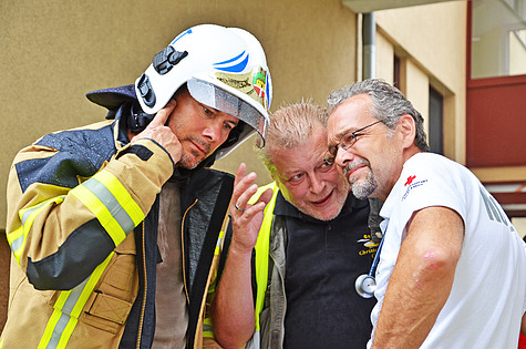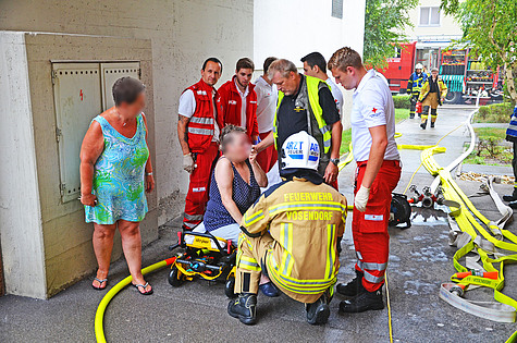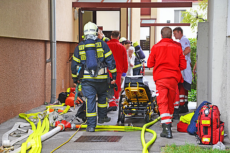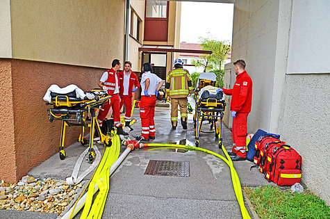 3 Notärzte und 4 Rettungstransportwagen vom Roten Kreuz standen für die geretteten Bewohner bereit.