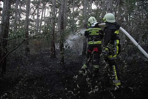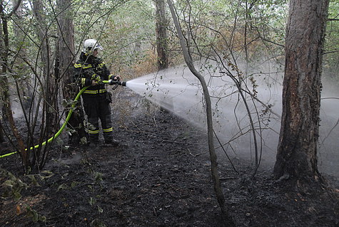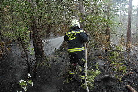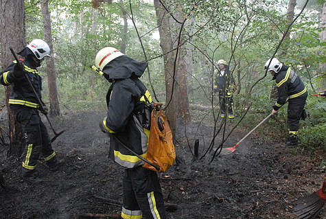 Kleinere Glutnester wurden mit Feuerpatschen ausgeschlagen bzw. mit Löschrucksäcken abgelöscht. Anfänglich stand die Verhinderung einer weiteren Ausbreitung im Fokus, um die betroffene Fläche möglichst klein zu halten. Dann wurden die Glutnester innerhalb sukzessive abgelöscht.