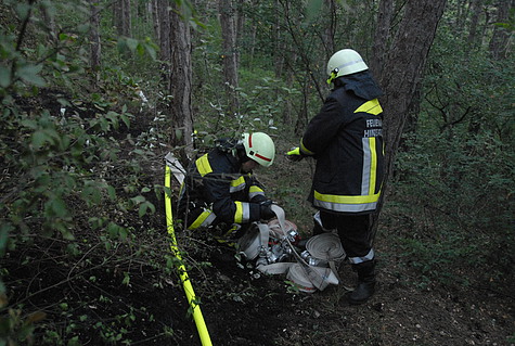 Dieser konnte mit der Wärmebildkamera den Brand rasch ausmachen und lotste die Einsatzkräfte der Feuerwehr am Boden mittels Suchscheinwerfer zum Brandherd auf dem Kalenderberg. Erst dann war für die Feuerwehr auch das Ausmaß und die mögliche Zugrichtung des Brandes erkennbar. Der Brand betraf vor allem die Bodenvegetation und hatte noch nicht auf größere Bäume übergegriffen.
