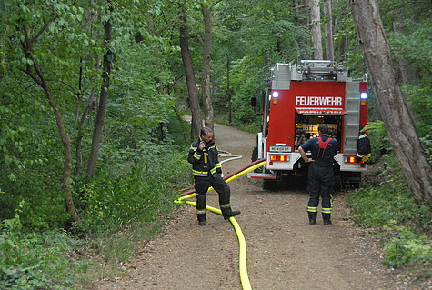 Von zwei Richtungen aus wurden von den Tanklöschfahrzeugen der FF Maria Enzersdorf Löschleitungen in den Wald gelegt und von insgesamt 3 Verteilern im Laufe des Einsatzes 6 C-Rohre und ein B-Rohr vorgenommen.