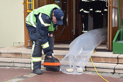 Der betroffene Behälter wurde anschließend ins Freie gebracht und gesichert abgestellt. Die Entsorgung übernimmt eine Spezialfirma. Nach über drei Stunden konnten die insgesamt 21 Mitglieder mit deren fünf Fahrzeugen wieder einrücken.