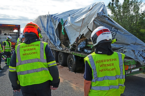 Nach rund zwei Stunden konnten die Einsatzkräfte der Feuerwehr Wiener Neudorf die Autobahn verlassen und ins Feuerwehrhaus einrücken.