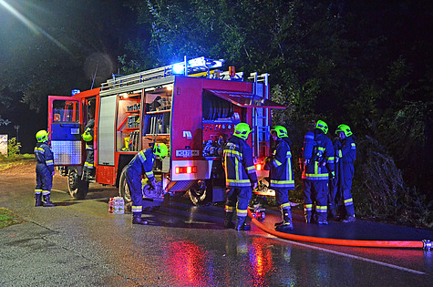 Um die Wasserversorgung und Atemschutzgeräteträger zu sichern, wurden die Freiwilligen Feuerwehren Sparbach und Heilligenkreuz nachalarmiert. Eine ca. 200 Meter lange Zubringleitung wurde verlegt sowie mehrere Lichtfluter aufgestellt, um die Einsatzstelle im unwegsamen Gelände ausleuchten zu können.
