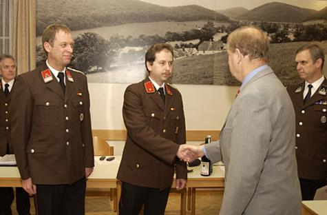 Den 21jährigen Emanuel Vermeer, Berufsfeuerwehrmann in Wien, stellte die Mitgliederversammlung dem wiederbestellten Kommandanten mit 53 Stimmen als Stellvertreter zur Seite. Der bisherige Feuerwehrmann trägt ab sofort den Dienstgrad "Oberbrandinspektor". Ing. Martin Schich bleibt Leiter des Verwaltungsdienstes.