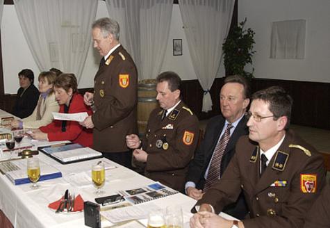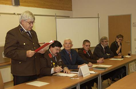 Bei seinem Rückblick als Kommandant ging OBI Karl Valenta sowohl auf das Jahr 2005, als auch auf die Entwicklungen in den letzten fünf Jahren ein. Ziel der Feuerwehr sei immer der Dienst am Nächsten und die ständige Erreichbarkeit, betonte OBI Valenta. Den Blick auf die Zukunft gerichtet, definierte der Kommandant als Ziel, Feuerwehrleuten ein Wohnen in der Gemeinde zu ermöglich. Inzwischen haben bereits 13 Aktive ihren Hauptwohnsitz nicht mehr in Biedermannsdorf. 2006 wird ein Tanklöschfahrzeug 4000 als Ersatz für das 23 Jahre alte TLF 2000 bestellt.