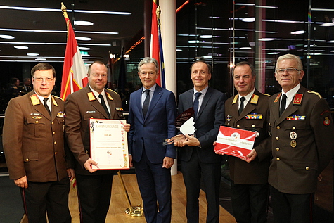 Die EVN ist ein führendes, internationales, börsenotiertes Energie- und Umweltdienstleistungsunternehmen mit Sitz in Maria Enzersdorf. Rund 400 Mitarbeiter der EVN sind österreichweit bei den Feuerwehren tätig und werden firmenseitig bei der Ausübung ihrer ehrenamtlichen Dienste am Nächsten bestmöglich unterstützt. Vorstandsdirektor Dipl.-Ing. Dr. Peter Layr übernahm mit großer Freude persönlich die Auszeichnung.