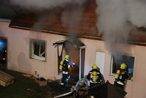 Gemeinsam mit der Rettung konnte der Mann schließlich aus dem Gefahrenbereich gebracht werden. Inzwischen wurde ein weiteres C-Rohr vor dem Haus sowie ein C-Rohr hinter dem Haus jeweils unter Atemschutz in Stellung gebracht. Um genügend Personal für weitere Trupps zur Verfügung zu haben, wurde die Freiwillige Feuerwehr Gumpoldskirchen nachalarmiert.