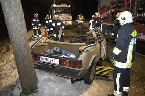 Aus dem Pkw rettete die Feuerwehr Breitenfurt den eingeklemmten Lenker und ein achtjähriges Mädchen, die Tochter einer Bekannten des Lenkers. Das Mädchen saß auf einem Kindersitz im Fond des Wagens, durch die Verformung des Autos beim Anprall wurden die Beine des Kindes zwischen Vordersitz und hinterer Sitzbank eingeklemmt. Auch der Lenker war im Fußbereich eingeklemmt worden. Um einen Zugang zu den Verletzten zu schaffen, durchtrennte die Feuerwehr sämtliche Dachsteher des Pkw und hob das Dach komplett vom Fahrzeug ab. Das Kind war ansprechbar, hatte aber augenscheinlich Beinverletzungen erlitten. Da auch die Gefahr einer Rückgradverletzung bestand, wurden die Rettungsmaßnahmen mit äußester Sorgfalt vorgenommen. Der Notarzt übernahm das Kind dann zur Erstversorgung. Zuvor war schon der Lenker mit Verletzungen unbestimmten Grades aus dem Fahrzeug befreit und dem Roten Kreuz übergeben worden. Im Bus befanden sich zum Unfallszeitpunkt nur zwei Fahrgäste und der Lenker. Sie alle blieben unverletzt. Feuerwehr-Einsatzleiter Hauptbrandinspektor Erwin Rautner, Kommandant der Feuerwehr Breitenfurt, spricht von einem kleinen Wunder: "Der Linienbus weist schwerste Beschädigungen auf. Ein Glück, dass der Buslenker nicht eingeklemmt wurde, und auch die anderen Fahrgäste unversehrt geblieben sind!" Die Freiwillige Feuerwehr Breitenfurt war mit 32 Mann und sechs Fahrzeugen im Einsatz.Bildautor: Martin Hofbauer/Pressestelle BFK Mödling