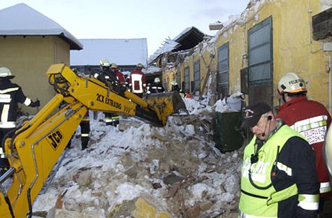 Um 6.30 Uhr langte der Notruf in der Bezirksalarmzentrale Mödling ein, die Feuerwehr Gumpoldskirchen wurde alarmiert. Nach dem Eintreffen am Einsatzort forderte diese die Feuerwehr Guntramsdorf zur Unterstützung an. 38 Feuerwehrleute und acht Fahrzeuge waren im Einsatz. Am Einsatzort bot sich folgendes Bild: Der Vorplatz der Boxen war bis zu eineinhalb Meter hoch mit Trümmern verschüttet. Dadurch waren auch die Türen zu den Pferdeboxen blockiert. Die Tiere selbst waren in den Boxen unversehrt geblieben, die Decke über ihnen hatte gehalten. In fast dreistündiger Arbeit der Feuerwehr mussten mehrere dutzend Kubikmeter Schutt sowie die Balken des eingestürzten Dachstuhls beseitigt werden. Unterstützt wurden die Arbeiten durch einen Radlader. Auf diese Weise konnte ein Boxenzugang nach dem anderen freigelegt werden. Für das gesamte Objekt bestand weiterhin Einsturzgefahr. Nachdem die Zugänge zu den Pferdeboxen geräumt waren, konnte ein Tier nach dem anderen in Ersatzboxen des Pferdestalls Richardhof geführt werden. Alle Tiere sind unversehrt. Ursache des Einsturzes dürfte ein Zusammenwirken von Schneelast auf dem Vordach, Sturm und alter Bausubstanz gewesen sein. Der betroffene Trakt ist eines der ältesten Gebäudeteile des Richardhofs, mindestens 150 Jahre alt. Nachträglich ist ein Vordach errichtet worden. Dieses dürfte nun die Mauer des Kniestocks ausgehebelt haben. Durch das Wegbrechen des Kniestocks rutschte der Dachstuhl nach vorne weg und stürzte vor die Boxen. Die Trümmerlast jener Dachstuhlteile, die auf die alte Holzdecke stürzten, wurden von dieser glücklicherweise aufgefangen, dadurch blieben die Pferde in den Boxen unversehrt.