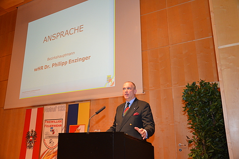 Bezirkshauptmann wHR Dr. Philipp Enzinger zollte Respekt für die erbrachten Leistungen und die großartige Arbeit die von den Feuerwehren des Bezirkes Mödling erbrachte wurde. Weiters bedankte er sich für die ausgezeichnete Zusammenarbeit.