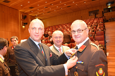 FVP LBD-Stv. Armin Blutsch berichtete abschließend über Neuerungen bzw. Aktivitäten aus dem Landesfeuerwehrkommando. Zum Abschluss wurde Josef Drexler zum Ehrenbrandrat und Fritz Gollob zum Ehrenverwaltungsinspektor ernannt sowie beiden die Ehrenmedaille des NÖ LFV 1. Klasse in Gold verliehen.