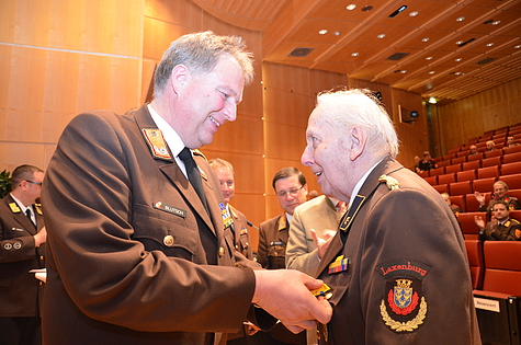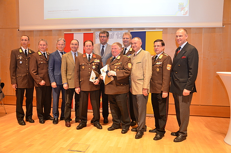 Eine besondere und zugleich seltene Auszeichnung wurde an EV Karl Klampfl, (FF Laxenburg), geb. 1922, verliehen. EV Klampfl ist seit über 70 Jahren Feuerwehrmitglied und somit maßgeblich am Wiederaufbau der Feuerwehr nach dem 2. Weltkrieg beteiligt gewesen.