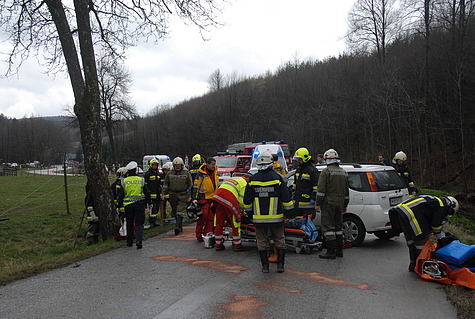 Nachdem sich herausgestellt hatte, dass die Personen nicht eingeklemmt waren, konnten die Feuerwehren Sittendorf und Dornbach wieder einrücken. In der Zwischenzeit war auch der Notarzthubschrauber eingetroffen. Nach der medizinischen Beurteilung und Betreuung durch den Notarzt, wurden die Verletzten schonend aus dem Unfallfahrzeug befreit und in zwei Rettungsfahrzeuge gebracht.