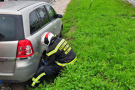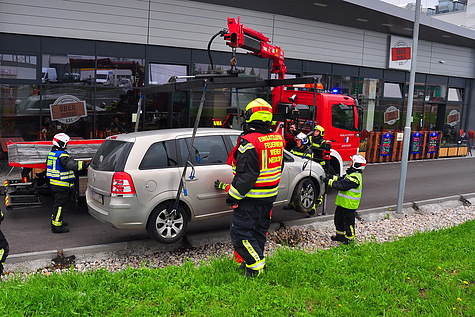 Aus dieser misslichen Lage bargen die Wiener Neudorfer Einsatzkräfte das festsitzende Fahrzeug mittels Ladekran und Hebekreuz des Abschleppfahrzeug Pkw, kurz Last 2. Der dennoch fahrbereite Opel wurde wieder auf den Parkplatz gehoben und konnte im Anschluss seine Fahrt selbstständig fortsetzen.