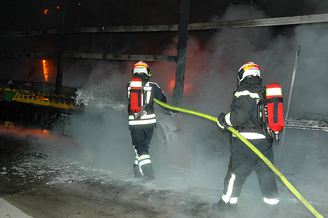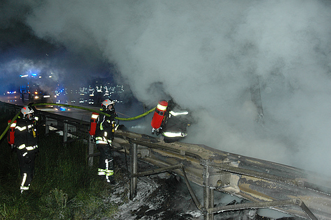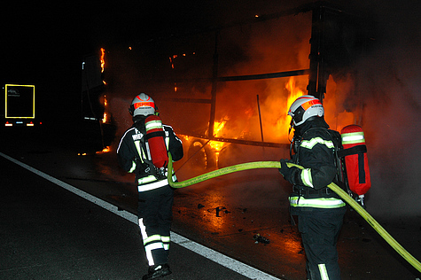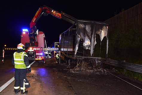 Bei Ankunft der Feuerwehr stellte man fest, dass ein Lkw-Anhänger in Brand stand. Die Sattelzugmaschine war vom Lkw-Lenker bereits abgekuppelt und in Sicherheit gebracht worden.