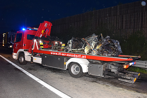 Um 2:08 Uhr wurde die Freiwillige Feuerwehr Wiener Neudorf zu dem Fahrzeugbrand auf die Autobahn alarmiert. Während der Anfahrt wurde dem Einsatzleiter der Feuerwehr mitgeteilt, dass nicht bekannt sei, was genau brennen würde.