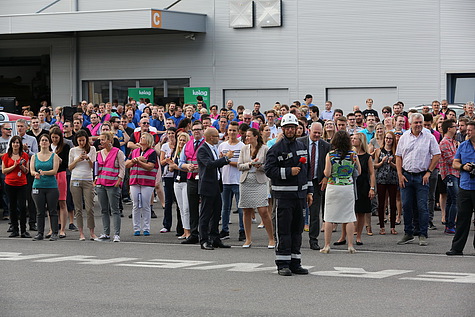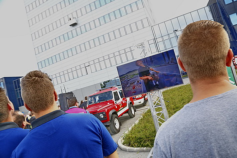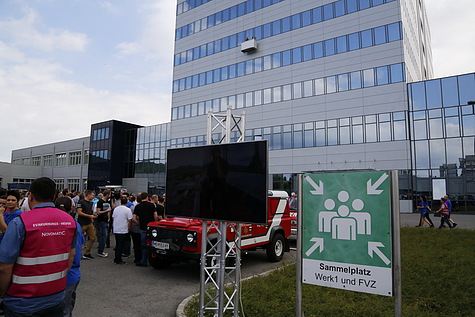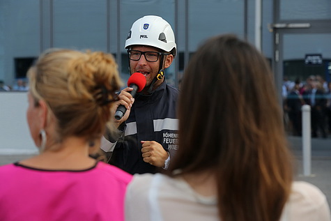 Im Rahmen des Novomatic Safety-Days (Zentrale Gumpoldskirchen, NÖ) trainierten nicht nur Mitarbeiter und Feuerwehr (FF Gumpoldskirchen) die Evakuierung der Gebäude, sondern es gab auch eine Übung der Höhenrettungsgruppe der FF Wiener Neudorf zu beobachten: