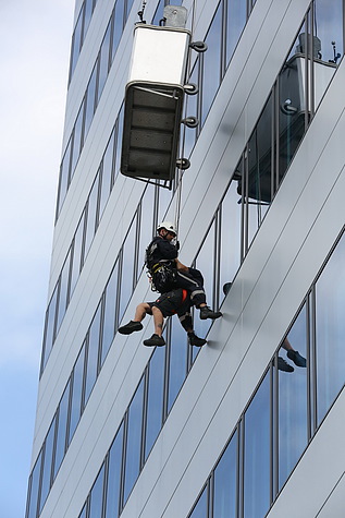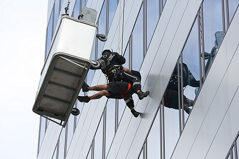 Eine Person musste aus einer defekten Fensterputzgondel gerettet werden, dazu wurde ein Höhenretter vom Dach des Bürogebäudes abgeseilt. Bei der Gondel angekommen konnte er den Arbeiter mit seinem eigenen Gurtzeug verbinden und beide wurden sicher zu Boden gelassen.