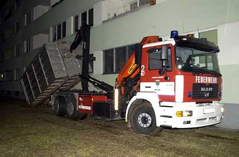 Auch dabei war die Hilfe der Feuerwehr erforderlich. Zu später Stunde benötigten die Beamten einen Großcontainer, um die Gegenstände, unter denen die Tote "verschüttet" war, für eventuelle weitere Ermittlungen verwahren zu können.