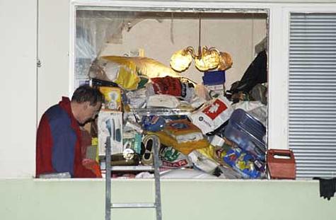 Die Eingangstür der Eigentumswohnung konnte die Feuerwehr zwar rasch öffnen, es gab aber über diesen Weg kein Weiterkommen: die Räumlichkeiten waren fast bis zur Decke mit Gerümpel und Sperrmüll vollgeräumt - eine sogenannte "Sammlerwohnung"! Gleichzeitig schlug den Einsatzkräften bestialischer Verwesungsgeruch entgegen.