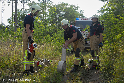 1. und 2. KHD-Zug:Um den Waldbrand effizient bekämpfen zu können, wurde die Mannschaft in der sogenannten Riegelstellung positioniert.