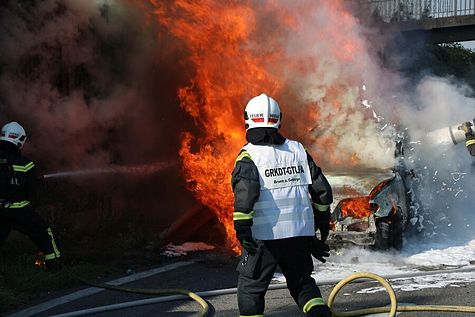 Der Lenker steuerte das Fahrzeug geistesgegenwärtig noch auf den Pannenstreifen und alarmierte über den Notruf die Feuerwehr.