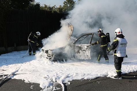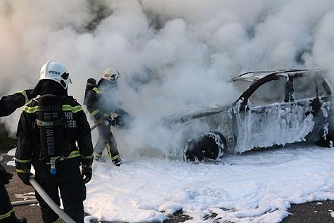 Bereits auf der Anfahrt konnte eine massive Rauchsäule erkannt werden. Als das erste Tanklöschfahrzeug am Einsatzort eintraf, stand der PKW bereits in Vollbrand.