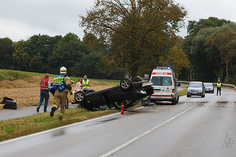 Aus unbekannter Ursache ist heute ein PKW auf der Laaberstrasse nach einem Verkehrsunfall auf dem Dach zum liegen gekommen.