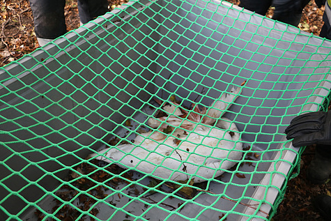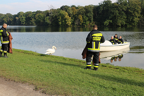 Vom Parkaufseher wurde ein verletzter Schwan im Bereich der Bootsanlegestelle angezeigt.Beim Eintreffen der Einsatzkräfte konnte das Tier nicht sofort gesichtet werden.Nach Abfahren des Uferbereiches des Schlossteiches wurde das schwerverletzte Tier auf Höhe der Franzensburg am gegenüberliegenden Ufer sitzend vorgefunden.Von einem Teil der Mannschaft wurde nach Besetzen eines Bootes verhindert, dass der Schwan ins Wasser flüchtet.Mittels Fangnetz und Unterlagsdecken wurde das schwerverletzte Tier behutsam eingefangen und vorsichtig in eine Transportkiste verfrachtet.Abschließend wurde der Schwan zur weiteren Versorgung zu einem Tierarzt nach Vösendorf transportiert.Die Freiwillige Feuerwehr Laxenburg stand mit drei Fahrzeugen und 13 Mitgliedern 90 Minuten im Einsatz