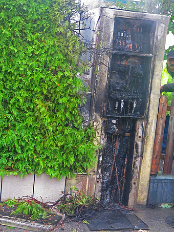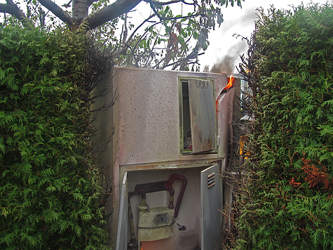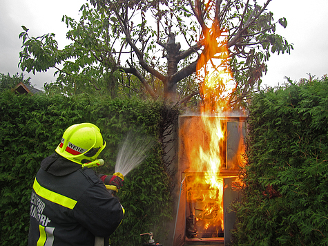 Durch die Intensität der Flammen, wurde unmittelbar danach auch der dahinter befindliche Gasverteiler (Kombiblock) erfasst und begann ebenfalls zu brennen.